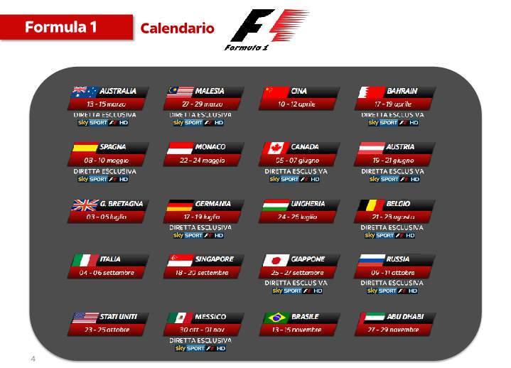 tutta la Moto GP™ in esclusiva e tutti i Gran Premi di Formula 1 in diretta, senza interruzioni pubblicitarie, con 2 canali dedicati, 30 ore live per 32 week end di gara per non frenare mai la tua passione. Tutta la Superbike, il FIA World Touring Car Championship, la 24h Le Mans su Eurosport HD e il World Rally Championship La Formula E in esclusiva su Fox Sport 2 HD e l’IndyCar e il Ferrari Challenge in esclusiva su Fox Sport HD. |